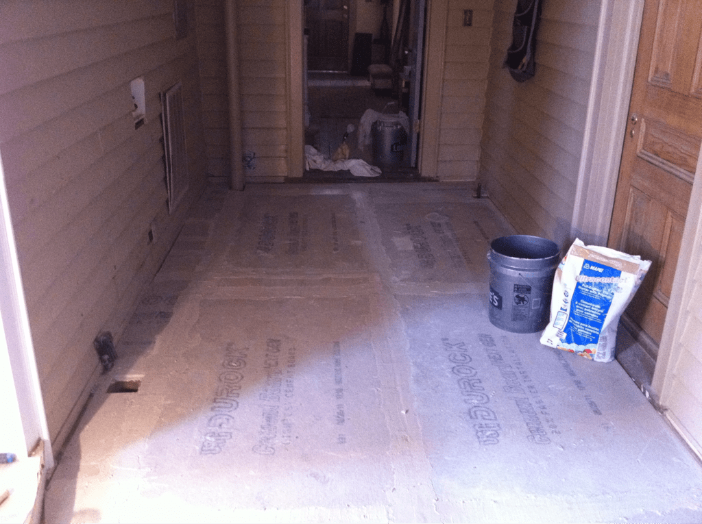 New underlayment finally installed. Next up, sanding. Then dry fitting tiles before laying them out.