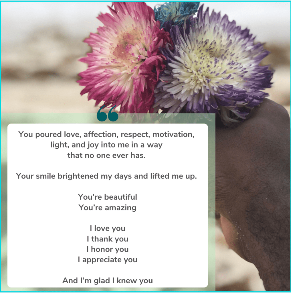 As part of the “ceremony”, I verbally acknowledge the goodness that this person brought into my life.